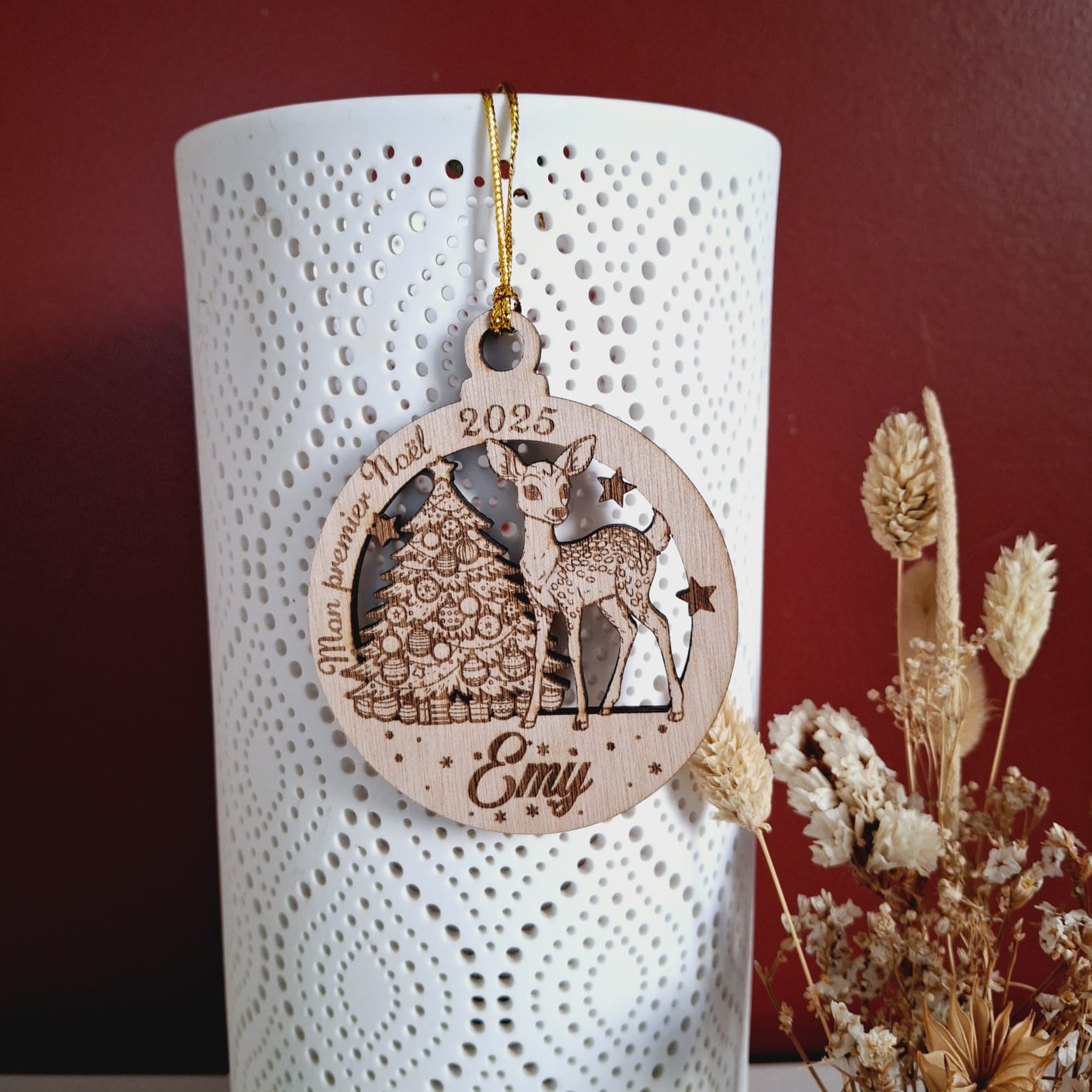 Par défaut l’inscription « Mon premier Noël 2025 » sera gravée. Si vous souhaitez la boule sans cette inscription, merci de nous le préciser avec l’information du prénom à graver.