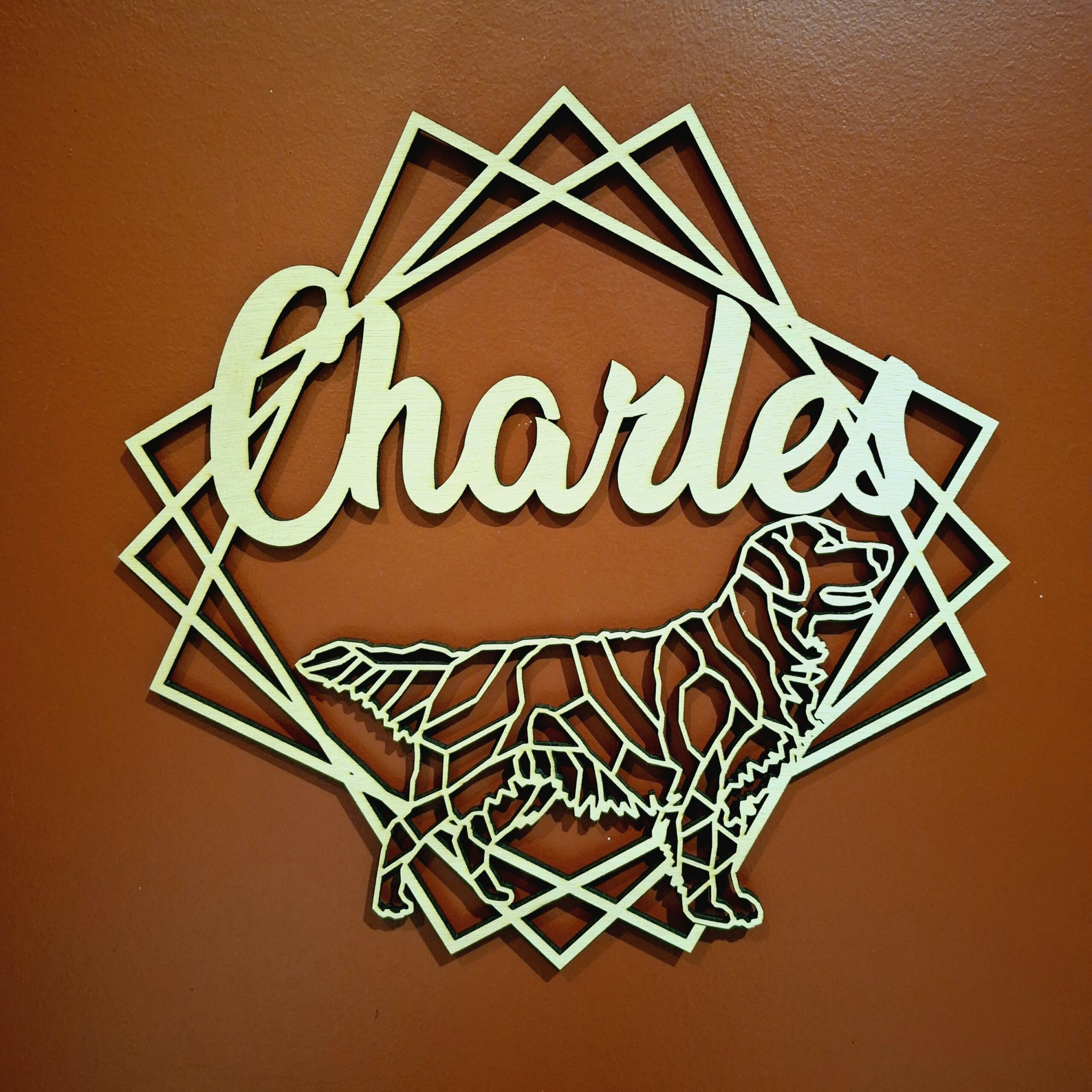 Personnalisez cette jolie couronne en bois naturel avec le prénom de votre choix et notre Golden Retriever. Une jolie création pour tous les fans des compagnons à quatre pattes !