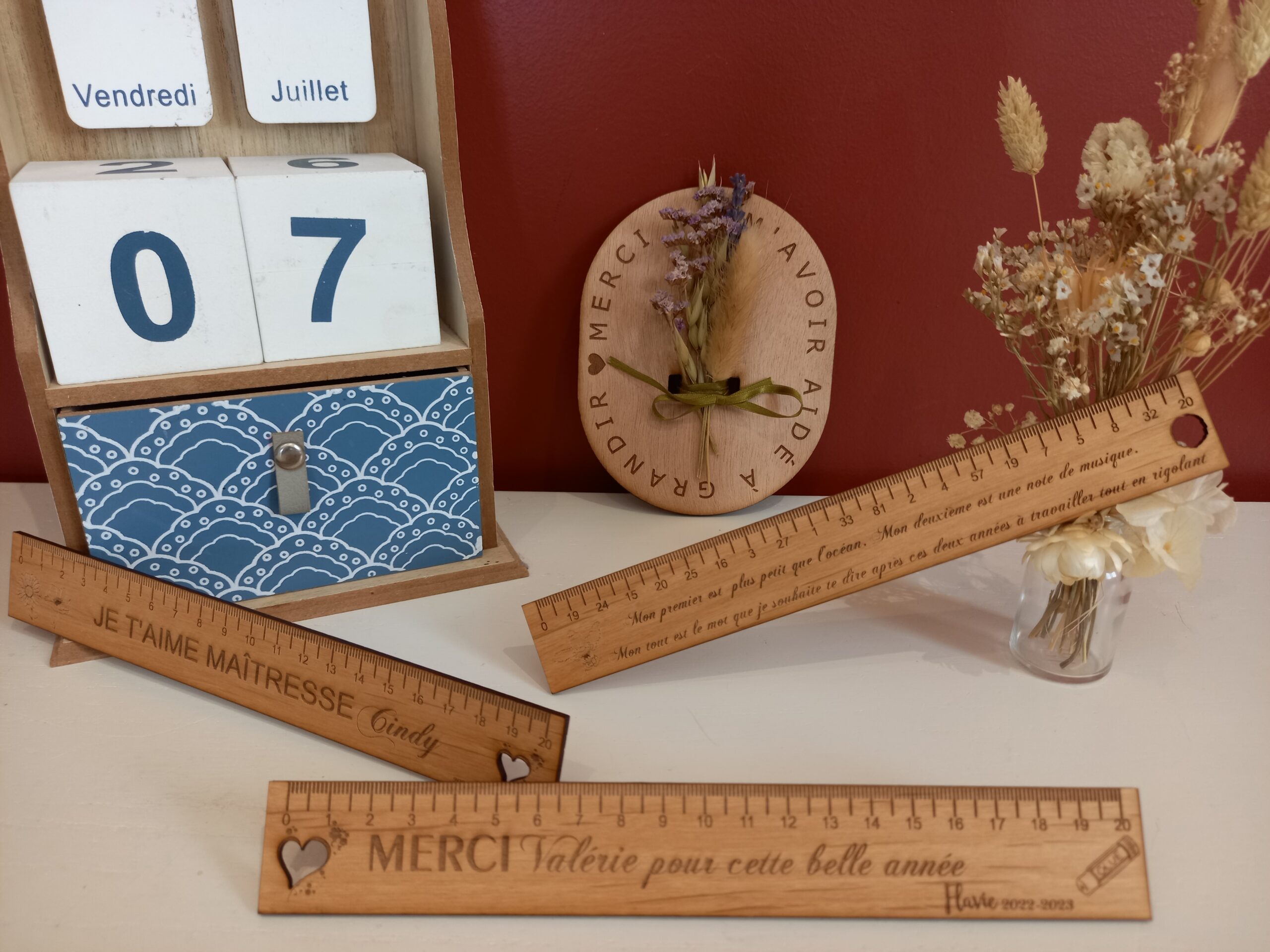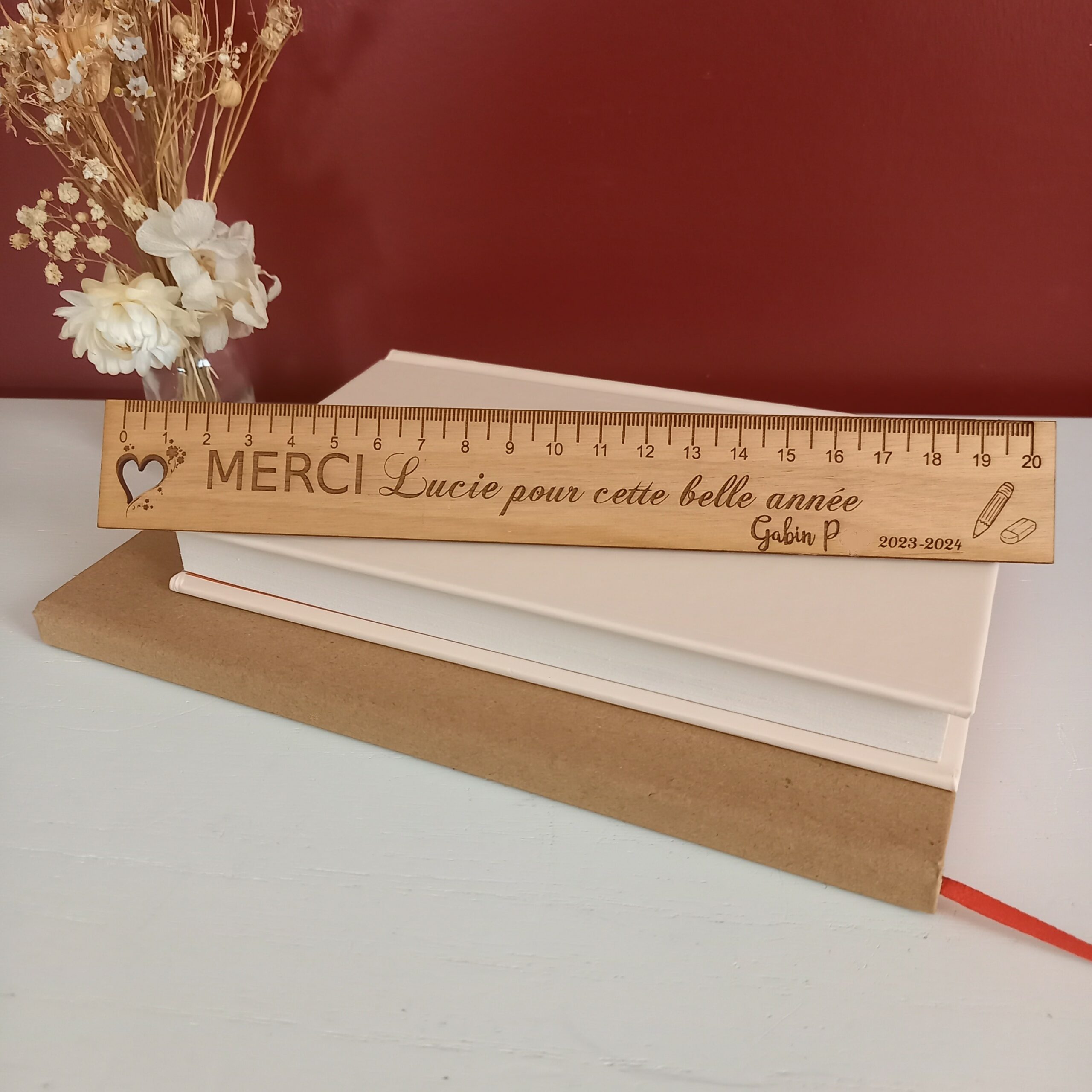 📏 Alliez utilité et originalité avec cette règle en bois de 20 centimètres, gravée au prénom ou texte de votre choix. Parfaite pour l’école, le bureau ou comme cadeau pratique et unique.